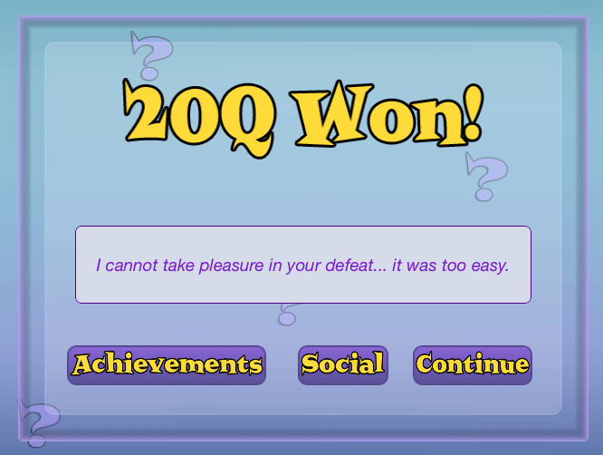 If it doesn't say 20Q, how can it read your mind? privacy, contact, license, sitemap ©1988-2014. 20Q.net Inc. All rights reserved. (050118)